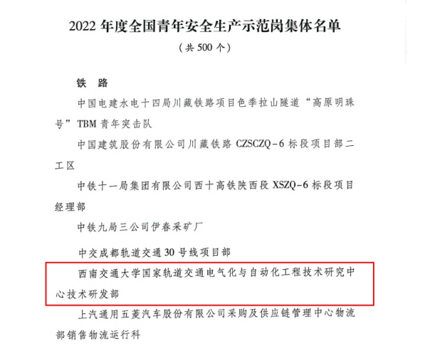 Recently, the National Committee of the Communist Youth League and the Ministry of Emergency Management jointly issued the list of the National Youth Work Safety Demonstration Post in 2022, and The Technology R&D Department of National Railway Electrification and Automation E...