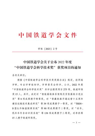 02 Mar 2023Two Projects Won "China Railway Society Science & Technology Award" In 2022