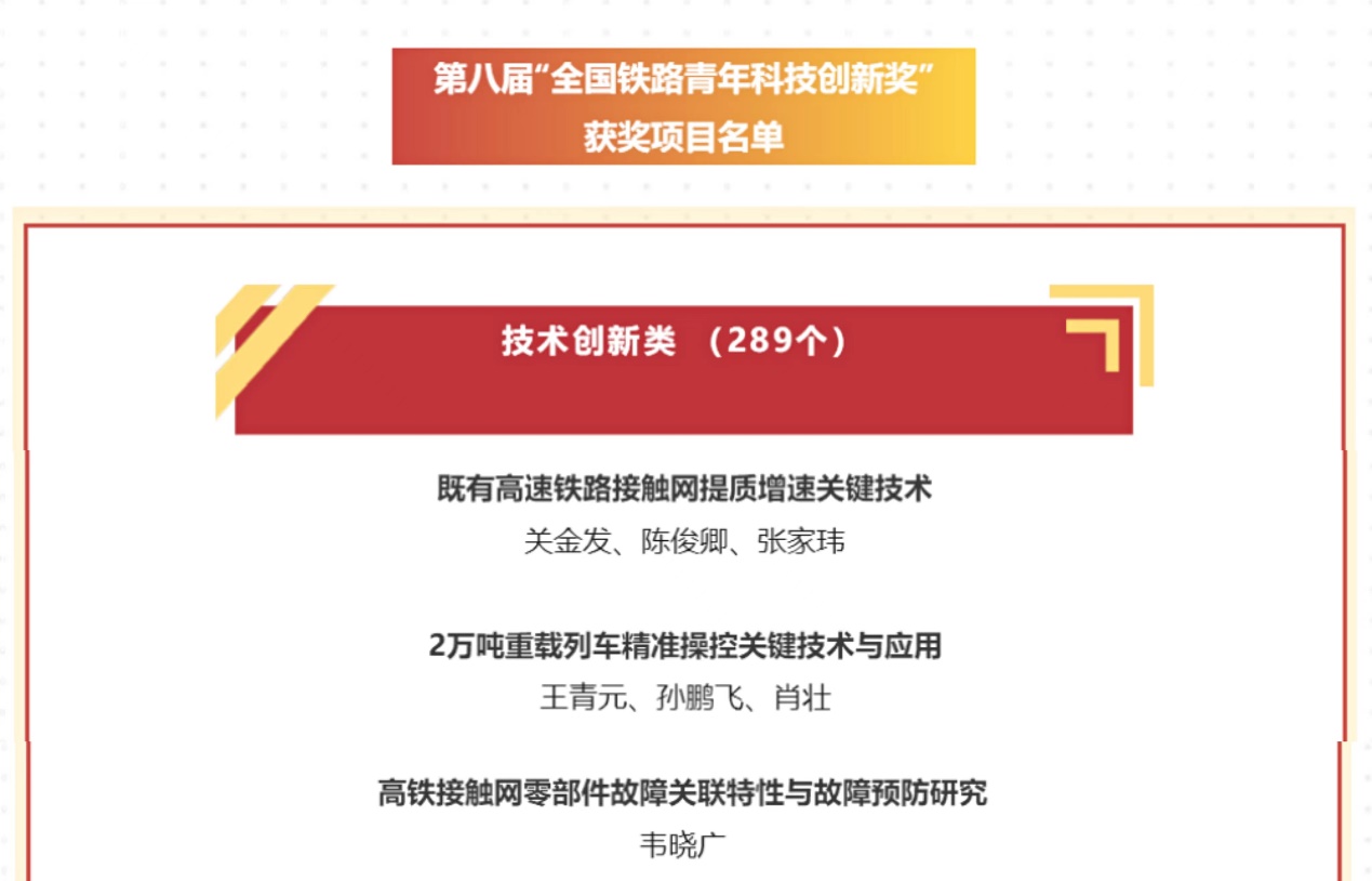 Recently, the winners of the 8th "National Railway Youth Science and Technology Innovation Award"were announced,which was carried out by the National Railway Youth League Committee, the Ministry of Science, Technology and Information Technology, the Ministry of Labour and Hea...