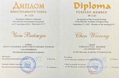 Recently, Professor Weirong Chen of Southwest Jiaotong University was elected as a foreign member of the Russian Academy of Engineering for his innovative contributions to the field of hydrogen energy rail transportation. The President of the Russian Academy of Engineering, Ac...