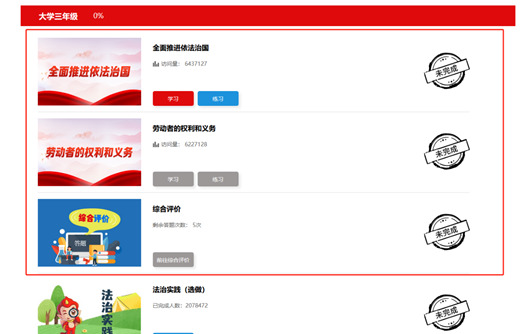 为推动员工积极参与“宪法卫士”行动计划,员工按照要求完成在线学习、课后练习、成果检测等任务后,可获得思想政治与道德素养类1学时。
