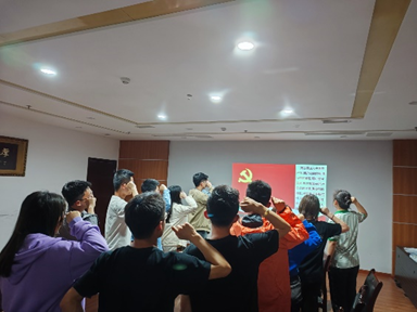 活动末尾,支部成员集体肃立,面对党徽,举起右手,握紧拳头,庄严宣誓:“我志愿加入中国共产党,拥护党的纲领,遵守党的章程,履行党员义务,执行党的决定,严守党的纪律,保守党的秘密,对党忠诚,积极工作,为共产主义奋斗终身,随时准备为党和人民栖牲一切,永不叛党。”