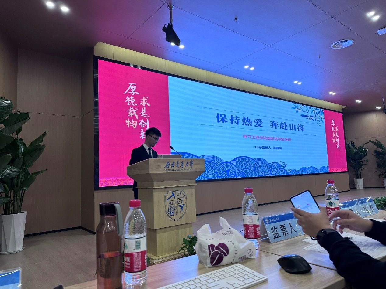 每位候选人按照顺序,结合上一学年个人在学习成绩、科创竞赛、文体活动等方面的综合表现,依次进行了为时3分钟的答辩陈述。作为国家奖学金候选人,同学们不但成绩优异,而且在员工工作、志愿服务、社会实践等方面全面发展,硕果累累,充分展示了个人的成长收获和电气学子的精神风貌。