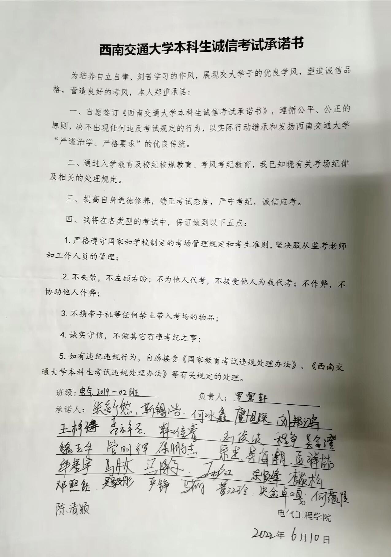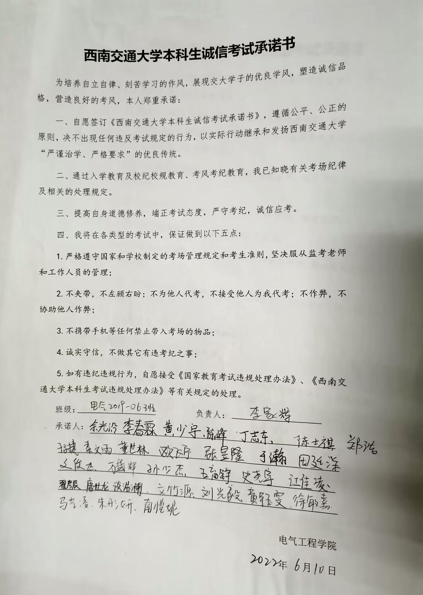 紧接着,樊芝菱老师、詹睿老师着重强调了考场纪律,并提醒同学们注意携带证件等。随后带领同学们学习《mksport体育本科生考试违规处理办法》并签订了诚信考试承诺书,以真实的案例警醒同学们要诚信考试。