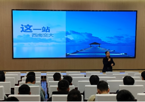 首先,高飞老师从“我从哪里来?“”我到哪里去?“ 两个问题引入,启发新生对大学成长道路的思考。高飞老师在轻松幽默的互动中告诉每一位同学都要从不同的过去前往各异的未来,而在西南交大停留的四年,将成为关联过往与未来的重要一站。高飞老师与各位同学一起回忆了见到交大时的第一印象,想西门而觉庄重大气、忆犀湖而觉温馨浪漫、思教室而觉严谨专业。高飞老师鼓励大家积极探索交大、感受老员工活的丰富多彩。
