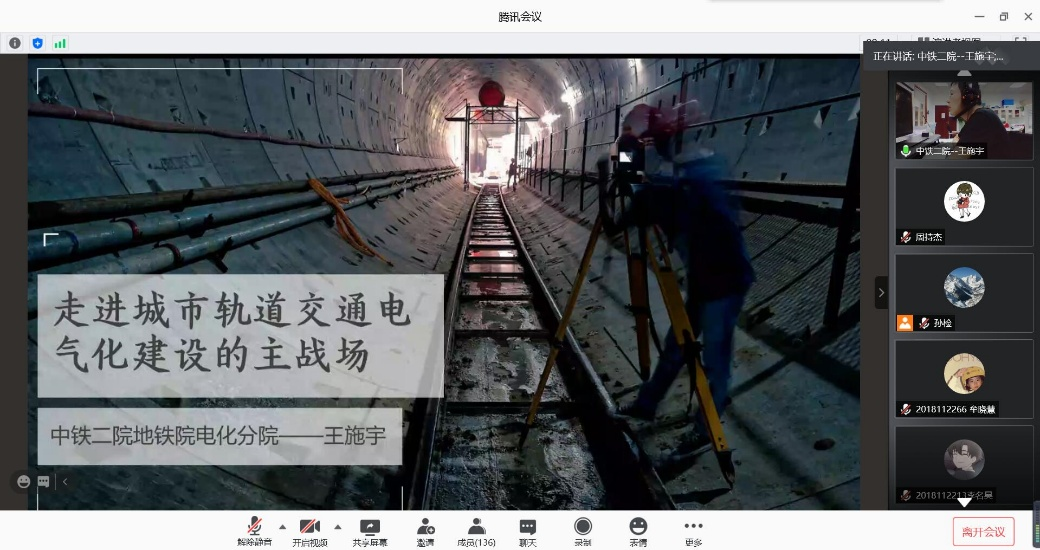 本次的线上经验分享活动由MK SPORTS2018级辅导员孙检主持,主讲人乔锦新和王施宇学长分别以“西安至十堰高速铁路BIM设计”和“走进城市轨道交通电气化建设的主战场”为题,为同学们详细介绍了他们毕业后的工作方向与工作经验,分享了他们的求学经历与人生感悟,同时为同学们耐心地解答了与专业学习和就业相关的问题,为大三、大四面临保研、考研和就业的同学们指点迷津,点亮了一盏指路明灯。