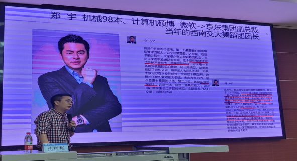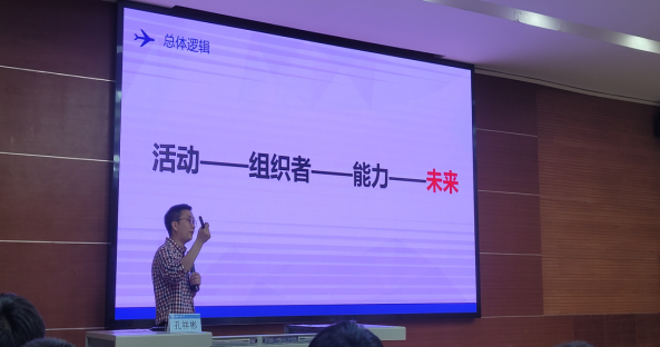 讲座伊始,孔老师向大家分享了几位员工通过员工干部这个平台历练成长的经历,引出了本次讲座的主题。接着通过对员工干部的意义、班团活动的重要性、班团建设的重点以及自身的感想体会四个部分的讲解,向同学们强调了员工干部工作的意义和价值,以及对未来事业发展的重要影响。