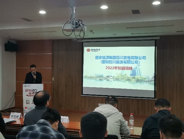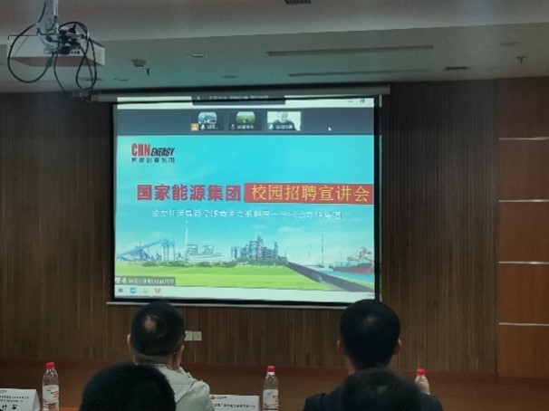 紧接着,国能集团下属子公司:国能黄骅港务有限责任公司、国能包神铁路集团有限责任公司和国能集团四川发电有限公司的负责人分别进行宣讲。负责人从公司情况、招聘岗位及流程等方面为同学们阐述了招聘要求。其中,国能集团四川发电有限公司的负责人通过视频展示了公司在四川高温保供攻坚战中做出的贡献,呼吁各位同学加入公司成为一名光荣的“发电人”。