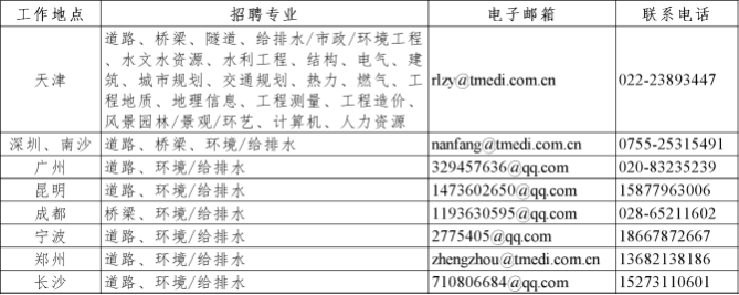 一、各地招聘专业及联系方式