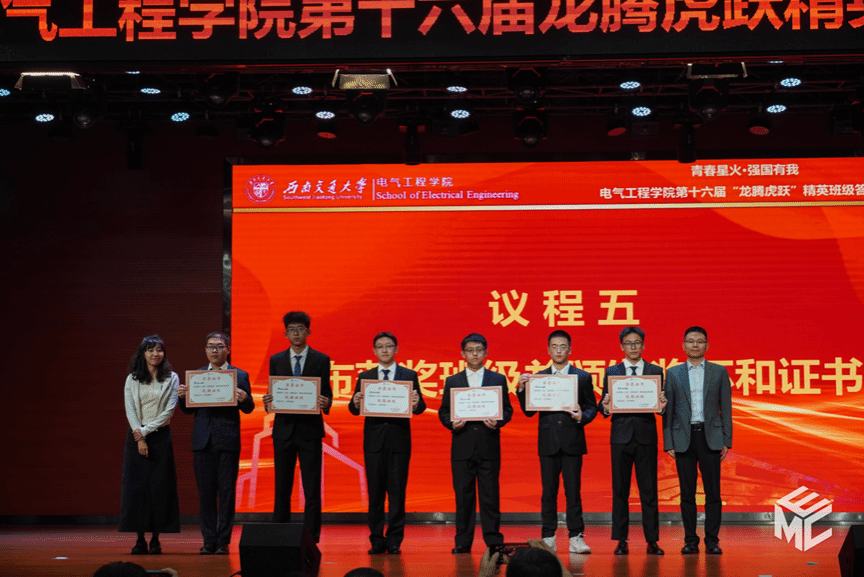 班级建设经验交流环节结束后,主持人宣布了本次“龙腾虎跃”精英班级答辩赛的获奖名单。王斌书记、吴广宁教授、谢力副书记、陈民武副经理、胡海涛副经理、张异老师为获奖班级颁发荣誉证书和奖杯。现场气氛热烈,同学们为获奖班级送去掌声与欢呼。