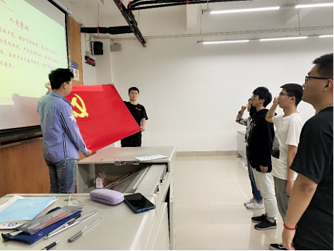 党支部全体党员同志面对党旗进行庄严宣誓,新发展的党员表示在今后的学习工作中,一定会坚定目标、严格要求自身,努力改正现有不足,积极向优秀共产党员学习,努力发挥共产党员的先锋模范作用。此次接收大会,为党支部注入了新血液,壮大了电气本科2018级第三党支部的党员力量,在党组织的带领下,全体党员同志必将以良好风貌,切实发挥共产党员的先锋模范作用,永葆共产党员的政治本色。