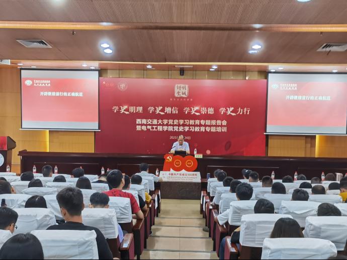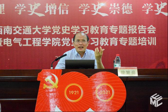 2021年6月24日下午,mksport体育党史学习教育专题报告会暨公司党史学习教育专题培训在图书馆二号报告厅举行,公司党委书记罗乾超带领中心组成员、师生党员代表参加培训。报告会主讲人为中共四川省委党校曾繁亮教授,罗乾超主持培训会。