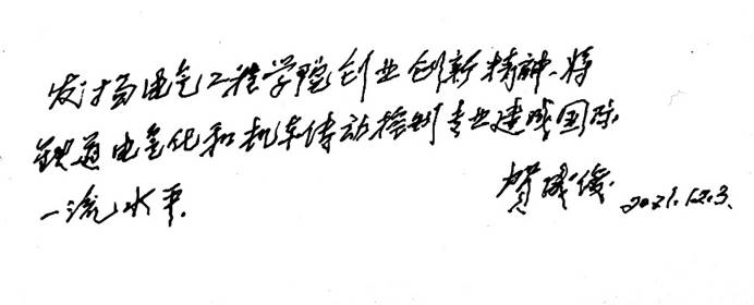 最后贺教授留下一段寄语鼓舞当代交大电气学子在奋斗中砥砺前行,他写道:“发扬MK SPORTS创业创新精神,将铁道电气化和机车传动控制专业建成国际一流水平”。贺教授严于律己、言传身教,培养了一批又一批铁道电气化与自动化英才,他敢为人先、勇于创新、务实奋进、迎难而上、辛勤耕耘、著书立说的精神都值得电气学子深深领悟和学习。