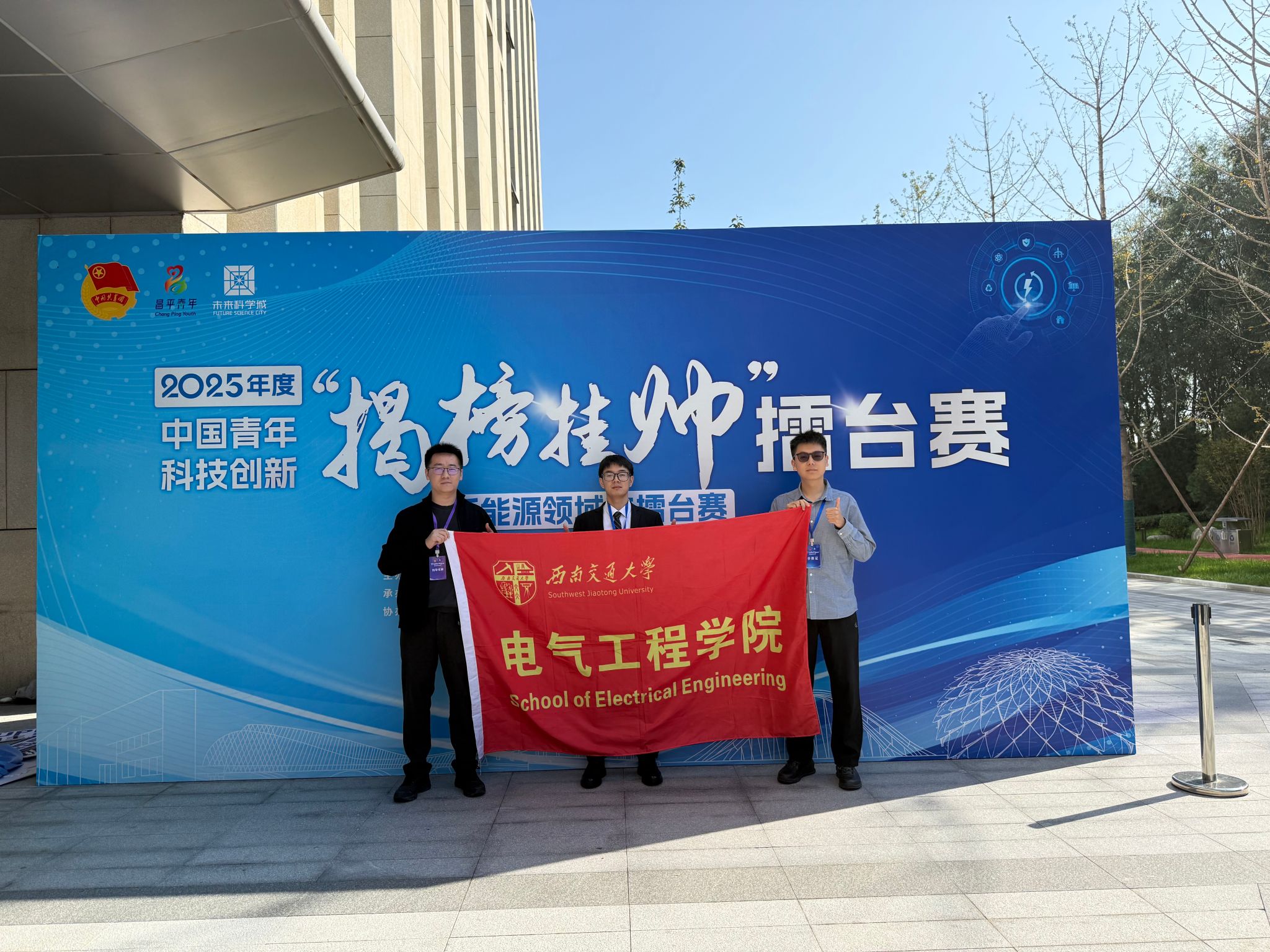The final competition of the 2025 China Youth Sci-Tech Innovation Challenge Cup (New Energy Track) closed with great success in Changping, Beijing on October 14. Under the guidance of SWJTU Communist Youth League committee, the project "Magnetic Flux Chain—A Wireless Deicing Device for High-Voltage Insulators Integrated with Magnetic Resonant Coils", advised by Prof. Li Yong from the School of Electrical Engineering, stood out among numerous national competitors and won the Top Prize in the student track on behalf of SWJTU. This achievement represents the school's inaugural victory in Challenge Cup. With cutting-edge scientific innovation, the project embodies the event theme: "Shouldering the Youth's responsibility for advancing Chinese-style modernization."