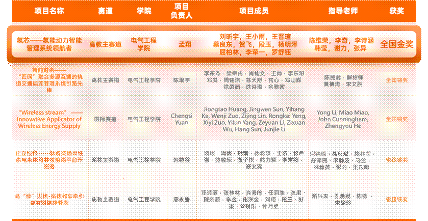 The project "Hydrogen Core - The Leader of Hydrogen Energy Power Intelligent Management System" directed by Professor Chen Weirong of the School of Electricity won the Gold Award in the national finals, which is the first gold award in the "Internet+" competition for our university. A breakthrough! The project "Smart Together - A Pioneer in the Integration of Four Networks and Multi-source Interoperability of Rail Transit Energy Flow Management System" directed by Professor Chen Minwu's won the Bronze Award in the National Final. In addition, the international project "Wireless stream" - Innovative Applicator of Wireless Energy Supply", recommended by Associate Professor Li Yong of the School of Electrical Engineering, won the bronze medal.