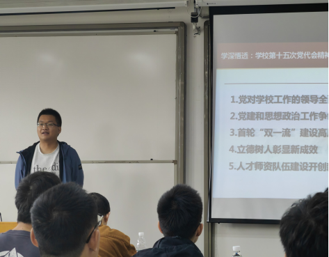 团课伊始,孙海洋老师带领同学们学习中国共产党mksport体育第十五次代表大会的精神,明确学校第十五次党代会是在喜迎党的二十大、奋力谱写中华民族伟大复兴的西南交大新篇章的关键时刻,召开的一次重要会议。并与同学们一同进行工作回顾,深刻领会第十四次党代会以来西南交大所获得的重大成就,增强同学们作为一名交大人的自豪感。