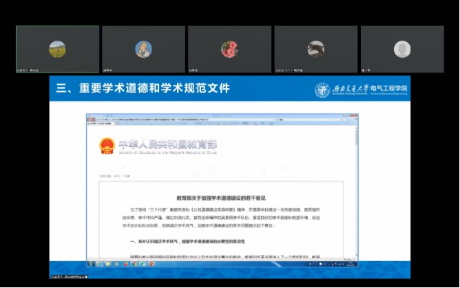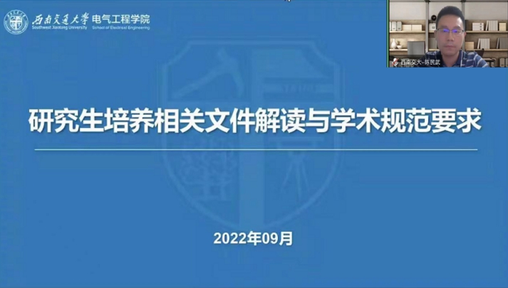 为打造“精勤研途”,传承 “双严”传统,助力2022级研究生新生学业规划,学院于9月8日晚19:30线上开展公司产品相关文件解读与学术规范要求讲座,副经理陈民武教授主讲。