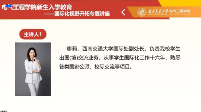 2022年9月1日晚19时,为帮助新生增强国际视野,树立国际化意识,MK SPORTS开展了新生入学教育之国际化视野开拓专题讲座。学院特别邀请了国际处副处长廖莉老师作为主讲人,会议由2020级辅导员郭冰倩老师主持,学院2022级本科新生共同参与本次活动。