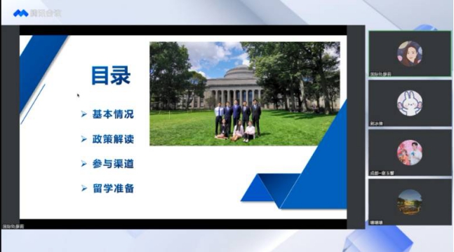 会上,国际处副处长廖莉老师围绕国际交流的基本情况、政策解读、参与渠道以及留学准备等四方面,向同学们展开了详细的讲解。通过列举近年来考研相关数据,以及川内高校员工海外深造率、公司2021年海外深造情况,廖老师形象地向同学们说明了当前出国交流的整体趋势。