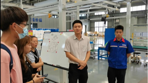本次“三下乡”活动主要以参观,会议讨论的活动形式展开。首先,在讲解员的带领下同学们来到了系统生产区车间,车间主要分为技术研发区,产品组装区和成品调试区等三大区域,在这里同学们可以详细了解一个产品从构思成型再到上市售卖的全过程。在成品放置区内,从火车动力装置的内部构造到汽车动力系统的优胜劣汰,从国内第一款体型巨大的100kw燃料电池到现在轻巧耐久高效率的氢燃料电池系统,同学们跟随着讲解员的步伐见证了一代代燃料系统的升级迭代,体会到了当代科技的高速发展。