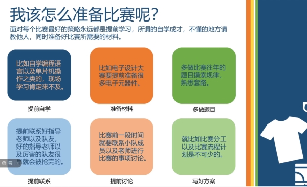 范昱骁同学也强调了竞赛一定要提前做好充分的准备;在竞赛软件方面,范昱骁也为同学们提出了一系列针对性的意见。