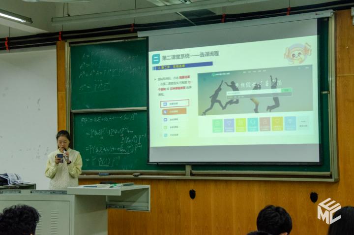 随后,主讲人向同学们罗列了常见问题,强调了许多选课的注意事项,提供了询问咨询渠道,对于同学们的主动提问当面解疑答惑。
