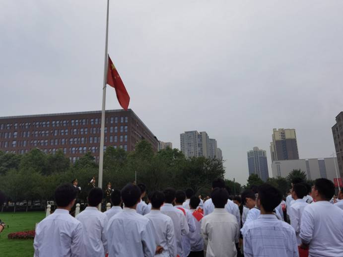 在雄壮而嘹亮的国歌声中,同学们列队向国旗行注目礼,一同高唱中华人民共和国国歌,鲜艳的五星红旗在师生们的注目下冉冉升起。