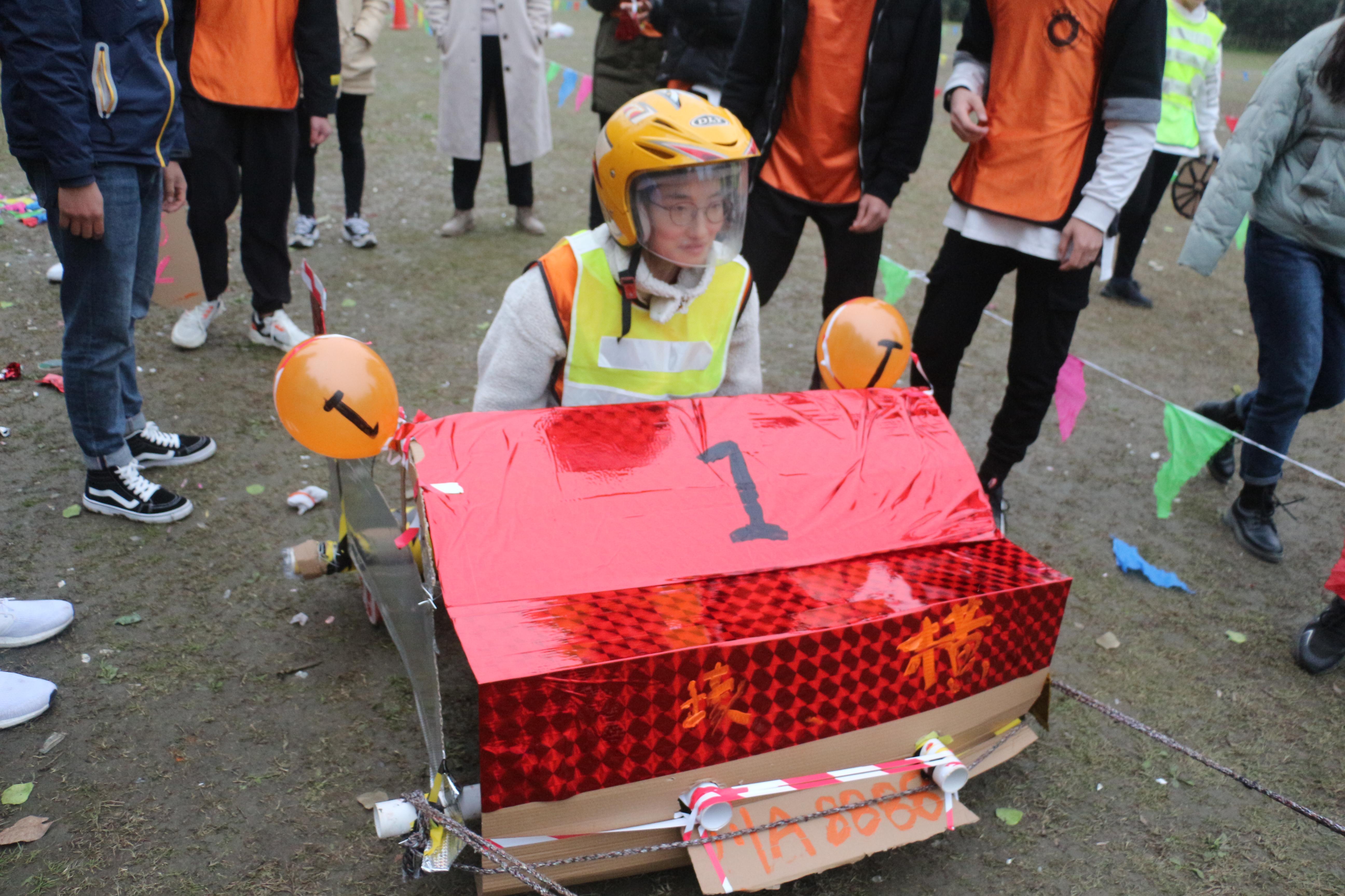 第二回合比拼,制作并进行赛车比拼。各队根据现有材料设计赛车,分工明确,团结协作,在不断尝试中各队特色鲜明的赛车成型。在比赛复杂的地形中,各队赛车性能良好,出色的满足了高速、美观、坚固的需求。在该项比拼中,“娜姐后援会队”略胜一筹,其他各队以微弱劣势稍显逊色。