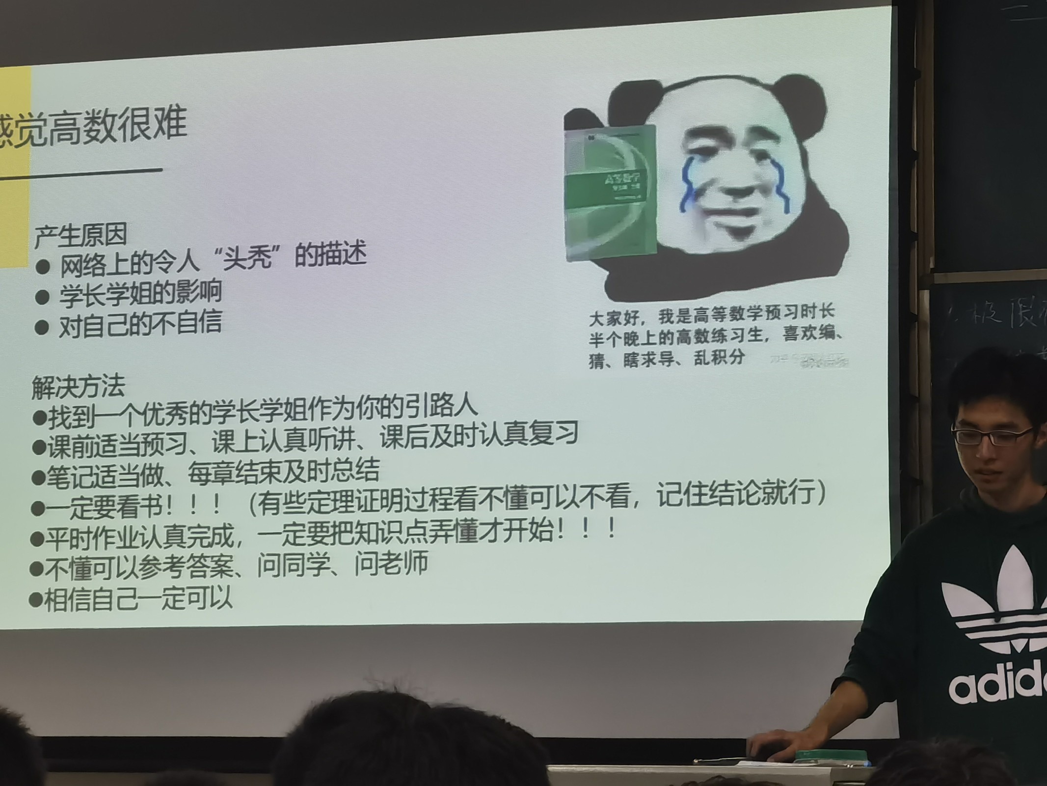 第四期的主讲人为2019级兰宇田同学,他详细地为大家讲解了线性代数的学习方法与应试技巧,建议大家要重视学习笔记整理和习题积累,学会举一反三,把平时遇到的好题与错题做上标记,方便期末复习,提高学习效率。对于大学学习和生活,兰宇田还谈到了时间管理的重要性,他从个人学业、班委工作、兴趣爱好等方面与同学们展开讨论,为大一的同学们应该如何规划老员工活提供了一个明确的思路。