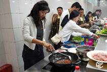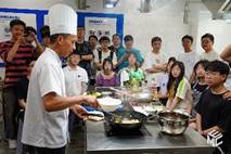 首先,犀浦校区一食堂厨师长授课。在简要讲述了鱼香肉丝和水煮肉片的历史渊源后,厨师长展示了操作过程。切肉、码味、起锅、翻炒…….鱼香肉丝光润鲜香,同学们争先品尝;勾芡,炸制海椒,热油激发的香气让人欲罢不能,水煮肉片的魅力就在于那一口麻辣过瘾,师傅逐步展示,同学们认真听讲,学习鱼香肉丝和水煮肉片的烹饪秘诀。