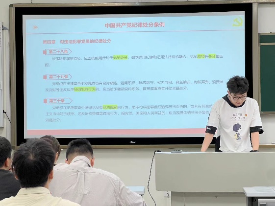 2024年5月到7月,硕士2023级-04班党支部将学习《中国共产党纪律处分条例》(以下简称《条例》)视为党支部成员的必修课、常修课,多次开展“深入学习《条例》”系列活动,通过学习,党支部全体成员在这两个月中全面系统的将《条例》中十一章一百三十三条内容进行了深入理解和领会。