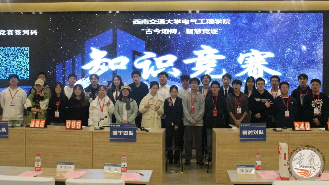MK SPORTS“古今熔铸,智慧竞逐”知识竞赛决赛于12月8日下午4点在图书馆一号报告厅正式举行。参赛选手在知识竞赛中激情对决、一较高下。到场的嘉宾有电子2023-04班班导师李志勇,23级辅导员詹睿、辅导员罗霁轩,22级辅导员孙海洋,21级辅导员何予诺,辅导员杨之溢以及各位辅导员助理。参加本次决赛的队伍为“蒙的全队”(电子2023-02班)、“啊对对队”(电气2023-05班)、“嘴干巴队”(电气2022-11班)、“原始人队”(电子2023-04班)。