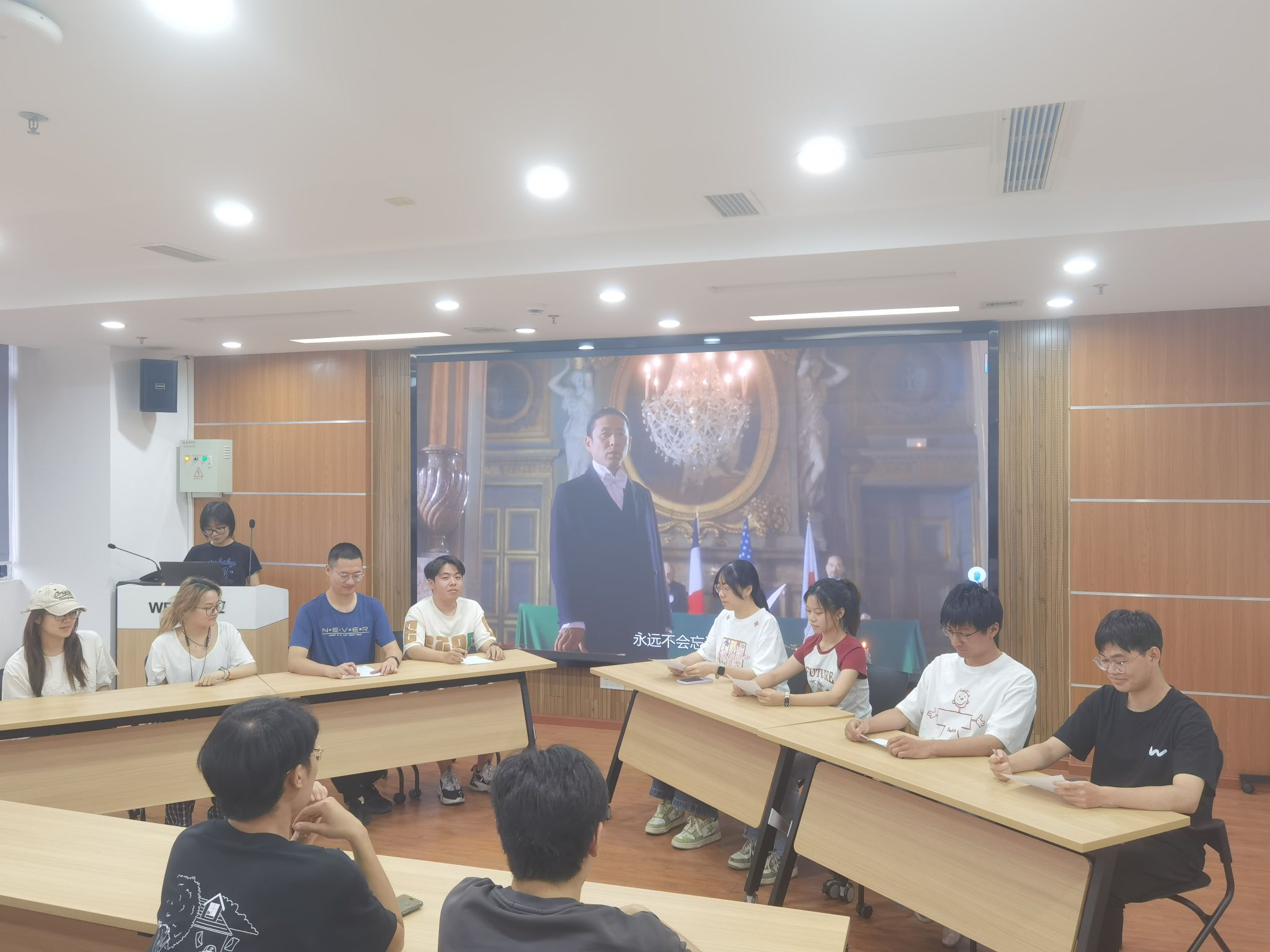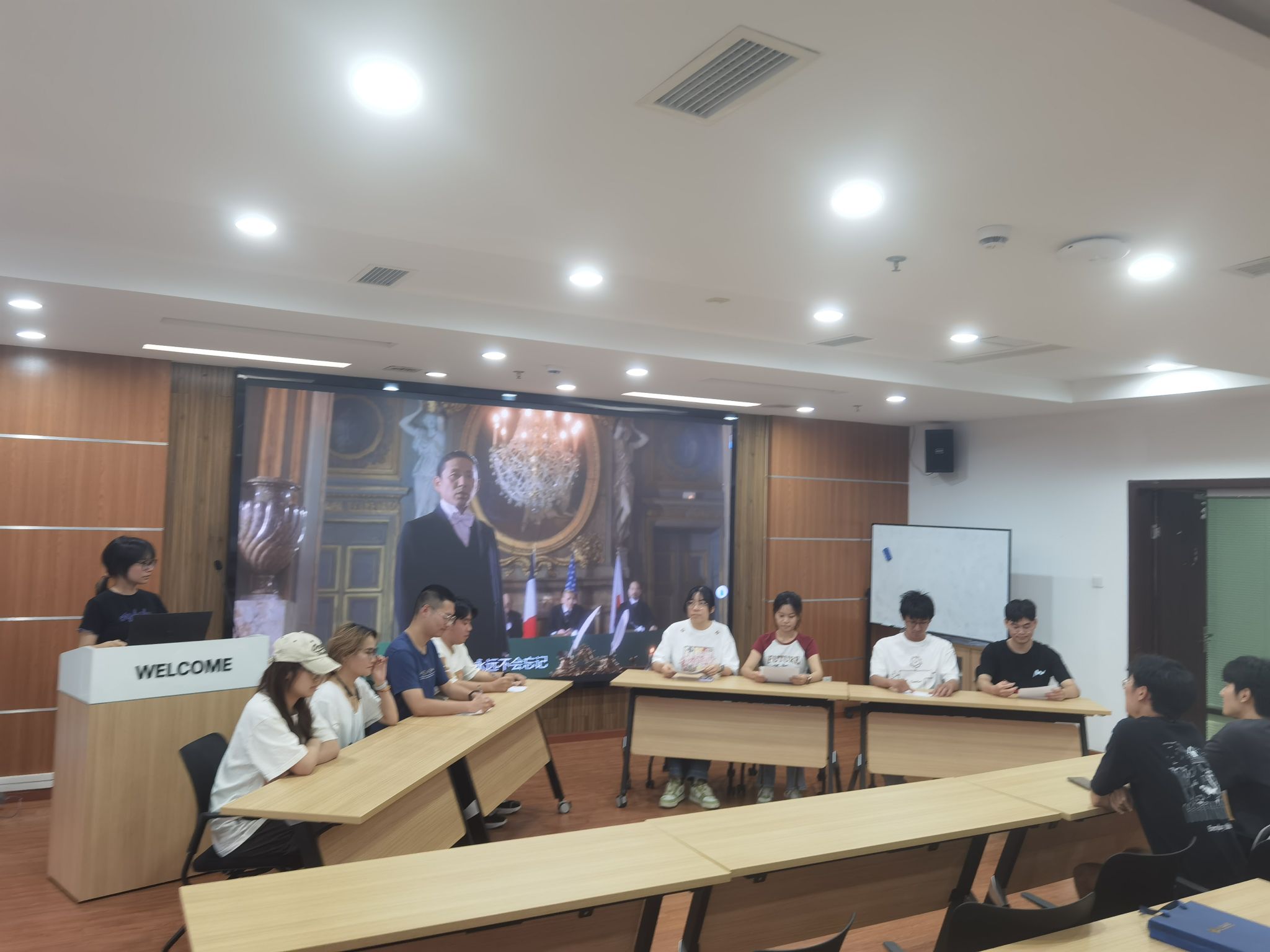 “再现历史情景,感悟革命精神”情景剧演绎活动主要聚焦于“五四运动”“巴黎和会”等历史场景,从历史情节中真正体会先辈们在民族危亡时刻的愤慨与担当,每个眼神和手势都充满力量。当巴黎和会外交失败的场景重现,同志们悲愤交加的控诉、振聋发聩的口号,让现场观众仿佛穿越回1919年的街头。沉浸式的演绎引发强烈情感共鸣,仿佛亲身站在历史现场,五四运动不仅是课本上的事件,更是一代青年用热血书写的觉醒篇章。
