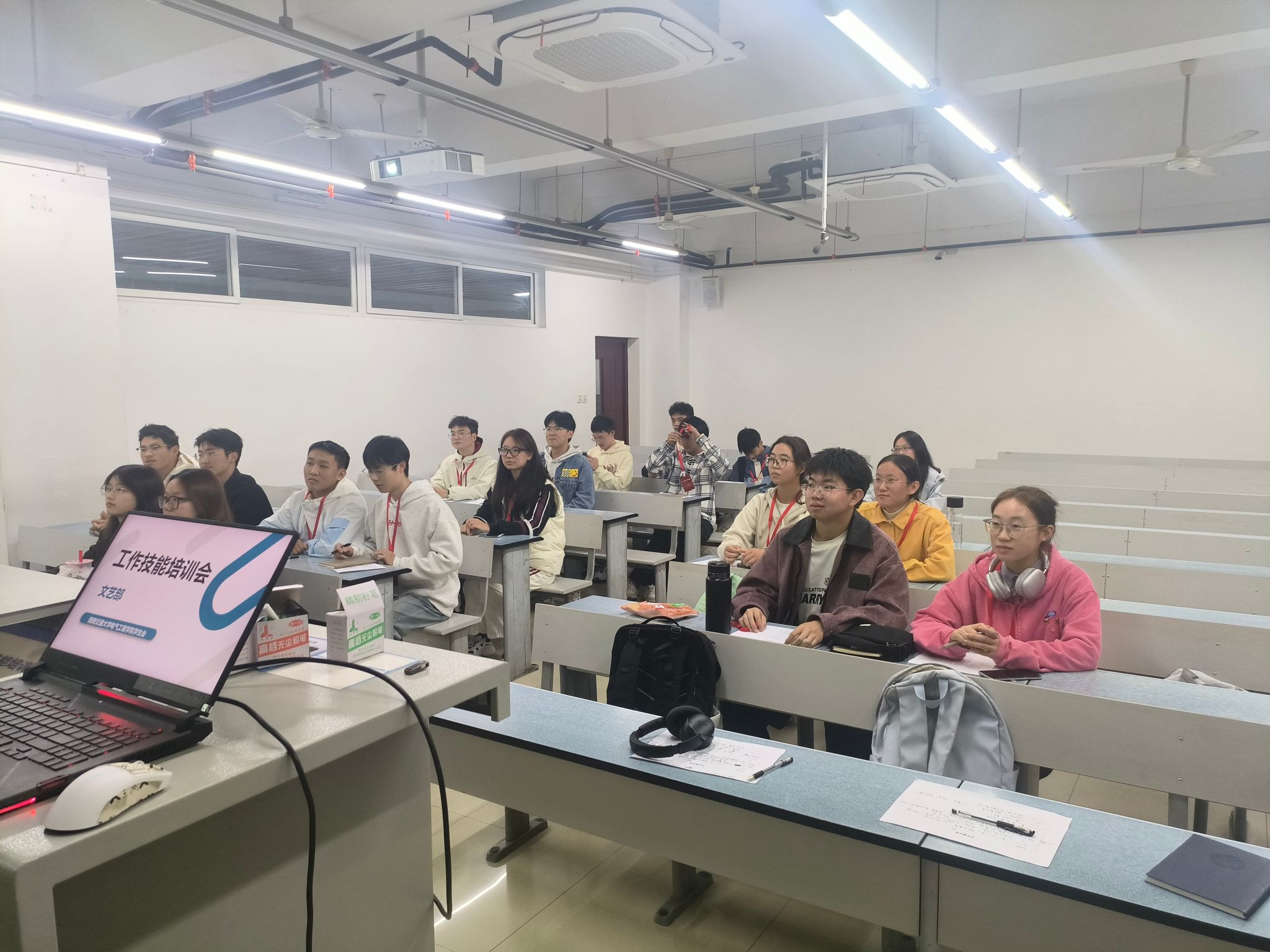 文艺部:严把节目质量关,提升艺术鉴赏力。文艺部围绕“迎新晚会”主题开展了专项培训。培训会详细讲解了活动策划的基本流程、舞台布置的注意事项以及节目筛选的标准与技巧。通过往年节目分析,部员们学习了如何从思想性、艺术性、观赏性等多维度对申报节目进行综合评估,以确保今后各类文艺演出节目内容丰富、形式多样、格调高雅,能够充分展现公司学子的青春风采与艺术才华。