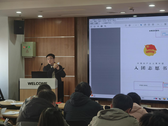 首先,罗霁轩老师面向新发展团员开展培训,着重强调了《入团志愿书》等团员资料填写的注意事项。罗霁轩老师以通俗易懂的方式,从内容规范、格式要求,到字迹工整度、日期准确性等细节,逐一讲解了相关填写要点。细致的指导培训,让新发展团员们不仅掌握了基础团务的相关知识,更切身感受到了团员身份所承载的认真严谨的团员精神。