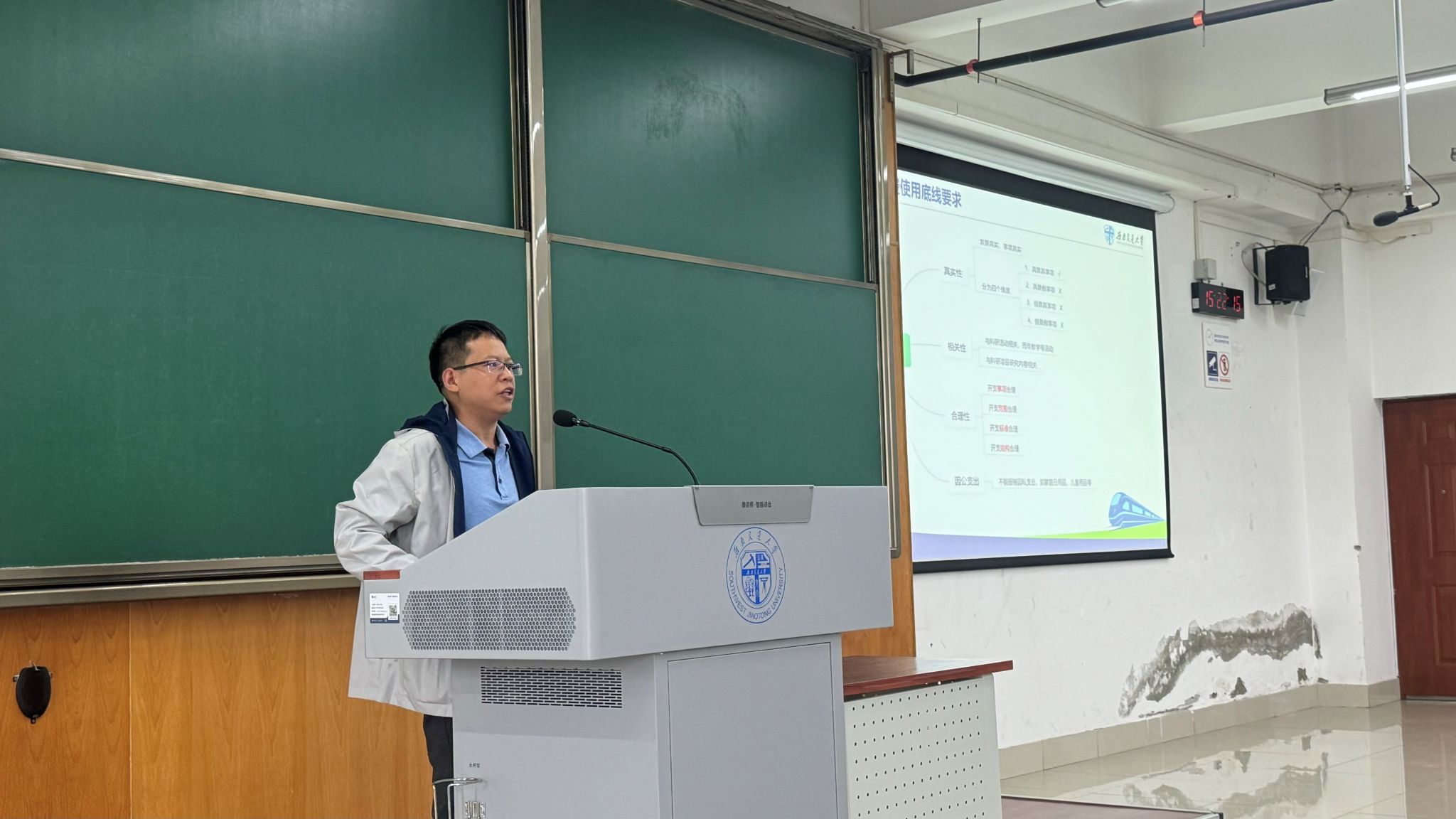 计划财务处副处长周国强为教职工作了《科研经费规范使用与风险防控》专题报告。周国强对科研经费使用过程中的规范要求、常见问题等内容作了详细介绍;同时,为教职工介绍了“科研全过程服务体系”、财务智能报销系统、自助投递机等为教职工科研工作服务的平台和使用办法。后期,学校计划财务处将推行“公务之家”差旅平台为广大师生提供差旅预订、差旅报销等一站式服务。