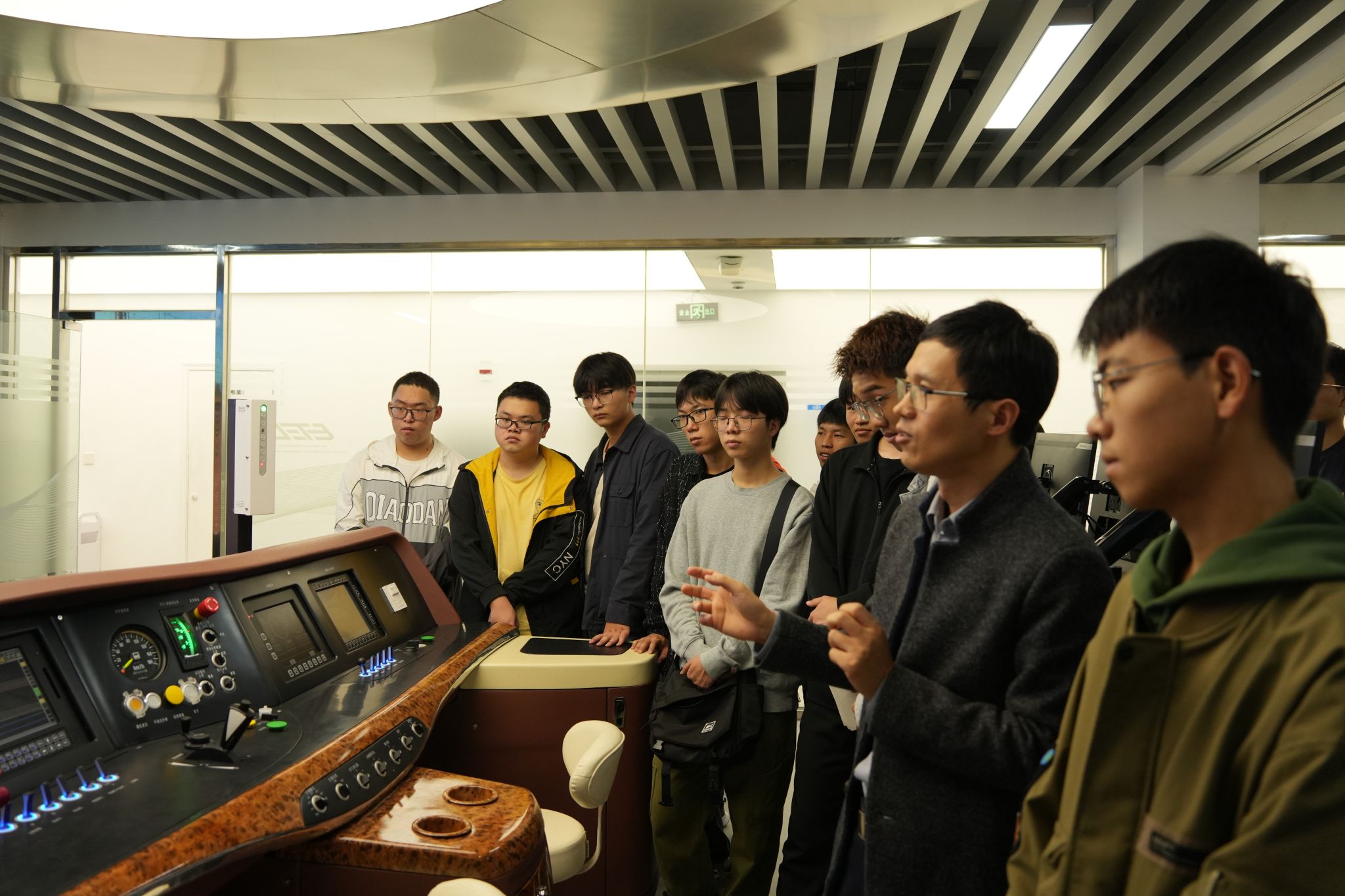 走进列车运行控制实验室,仿佛置身于轨道交通的“大脑“。MK SPORTS教授级高级工程师王青元在智慧大屏上为同学们展示了实时变动的列车客流分布情况,以及精准到秒的列车发车时间表。网络平台汇聚海量数据,通过智能分析,可以实现对列车运行的精准预测和协同管控。随后,同学们围绕着机车模拟驾驶台,认真观看王青元老师演示列车操控流程,近距离感受科技赋能带来的便捷与高效。