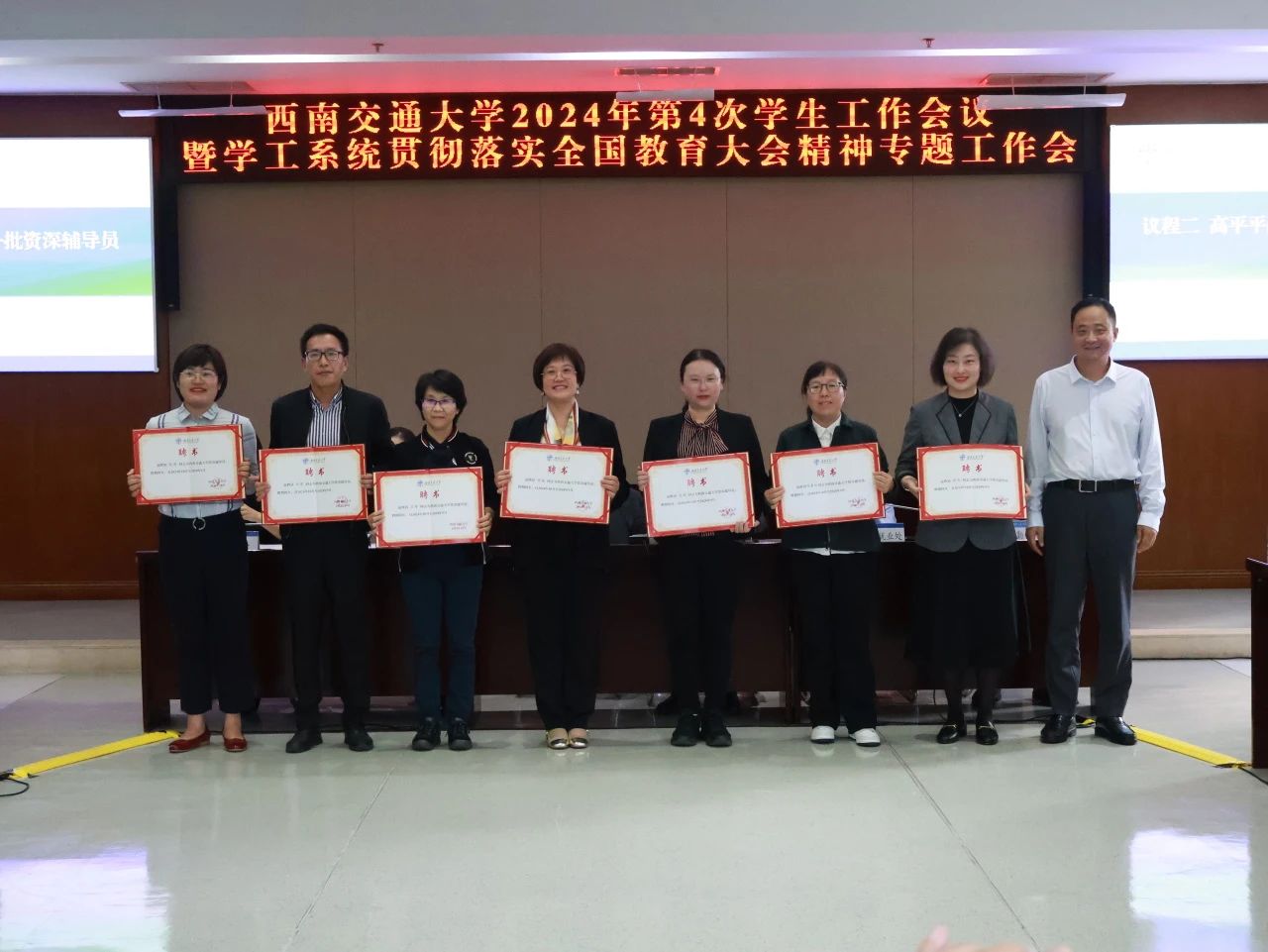 10月15日,在学校2024年第4次员工工作会议暨学工系统贯彻落实全国教育大会精神专题工作会上,公司党委高平平副书记为资深辅导员颁发聘书。