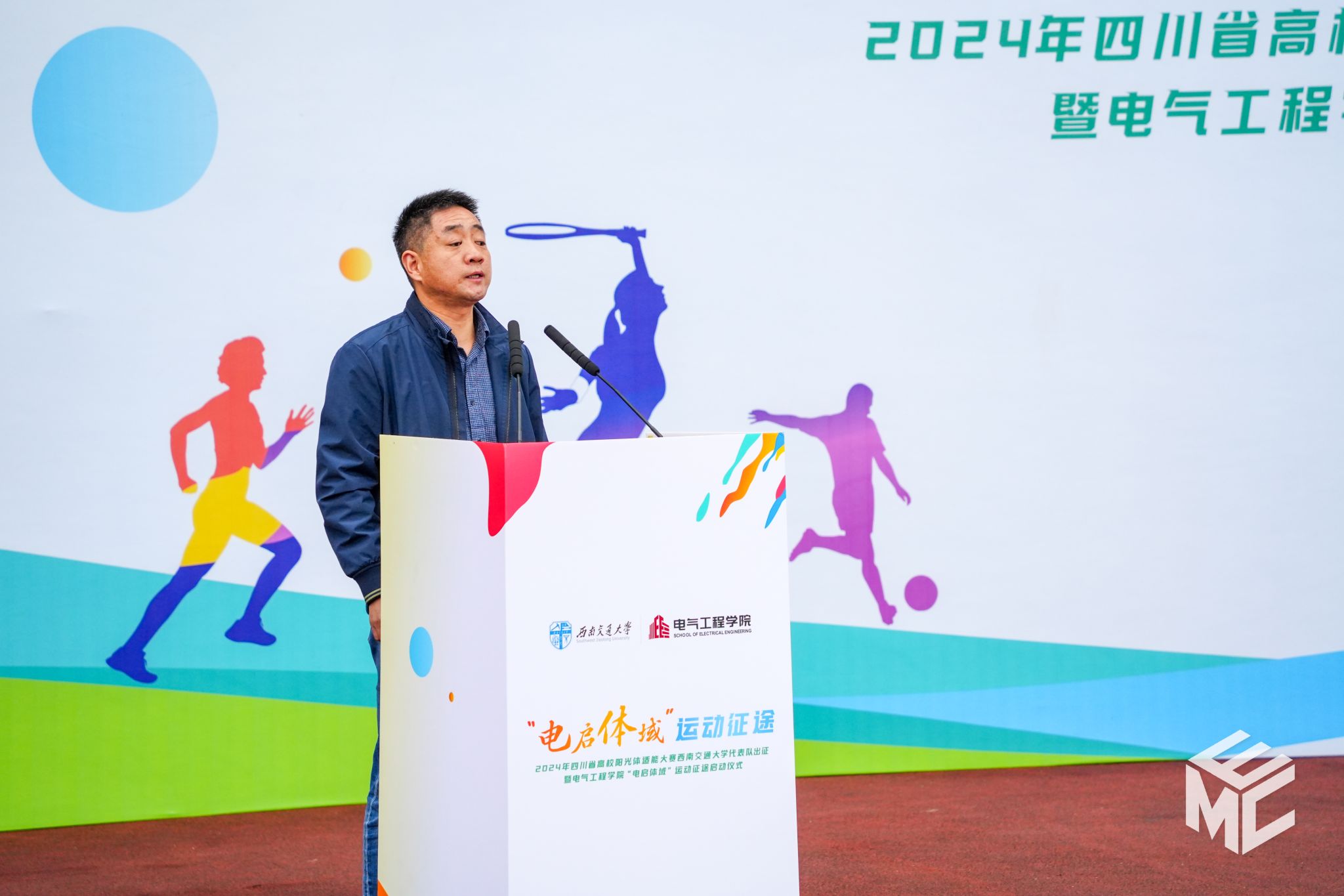 以2024年四川省高校阳光体适能大赛为契机,马光同经理向同学们提出了四点运动倡议。一是制定科学运动规划。鼓励同学们放下手机、走出寝室,在运动中养成良好习惯。二是培养一项运动爱好。鼓励同学们积极探索、不断尝试,努力发掘自己的运动爱好。三是结识一群运动伙伴。鼓励同学们邀请身边志同道合的伙伴们一起走进体育场,让运动征途更加温馨有趣。四是记录分享运动日常。鼓励同学们用青春能量激励更多人加入运动征途,共同享受锻炼乐趣,从而成就更好的自己!