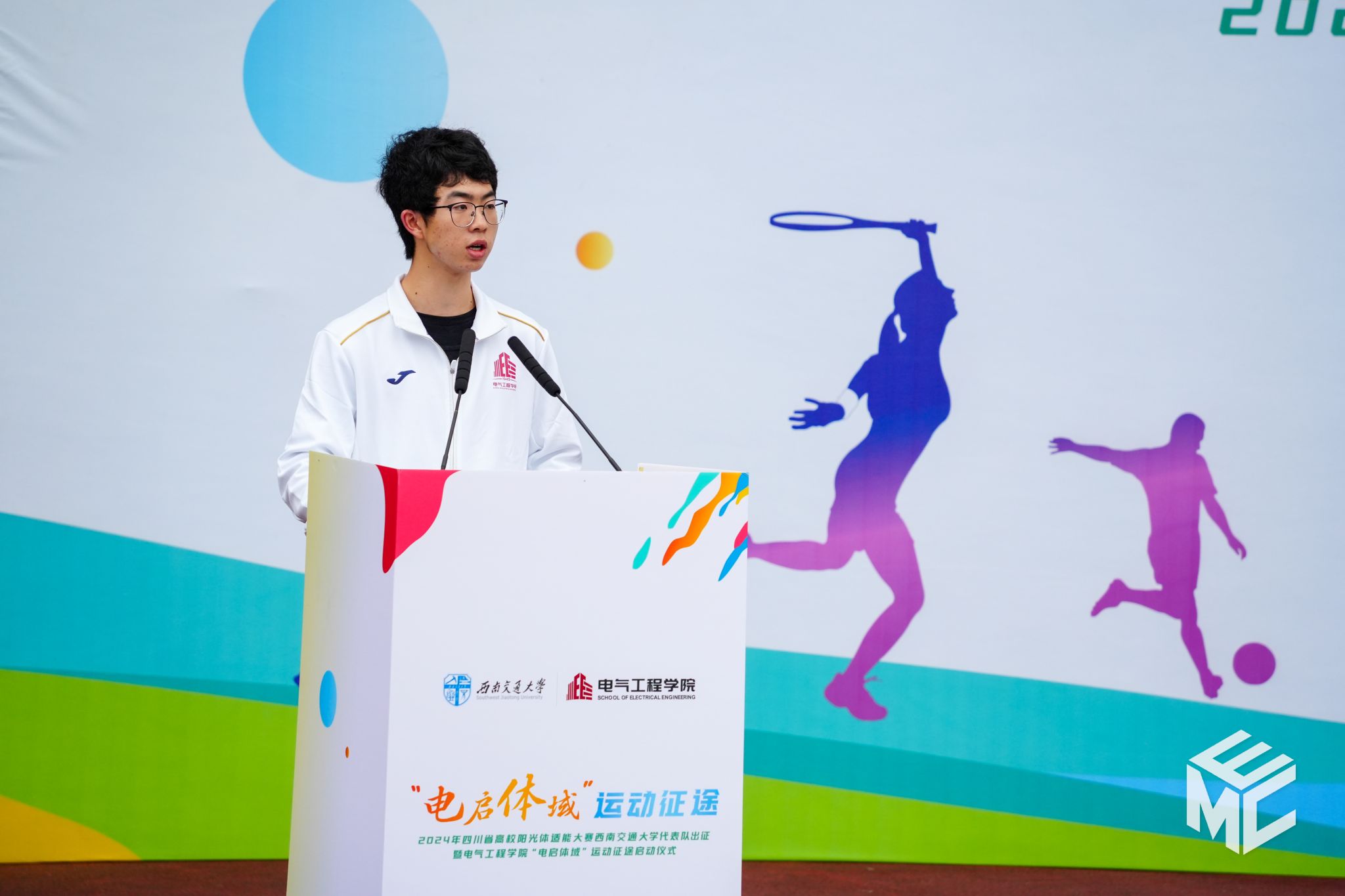 运动锤炼体魄,青春奋发启航。在一阵阵欢声笑语与加油鼓舞声中,学院师生在“电启体域”运动征途中挥洒汗水、稳步前行。预祝8位运动员代表在2024年四川省高校阳光体适能大赛中取得优异成绩,希望同学们积极响应马光同经理的倡议,在运动中养成良好习惯,涵养阳光心态,磨练坚毅品格,用青春激荡起强国建设、民族复兴的澎湃春潮。