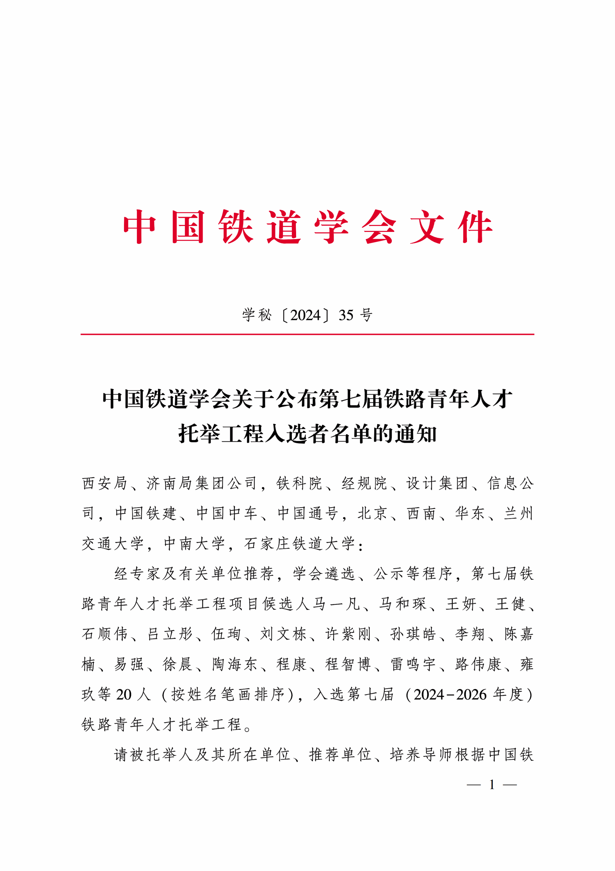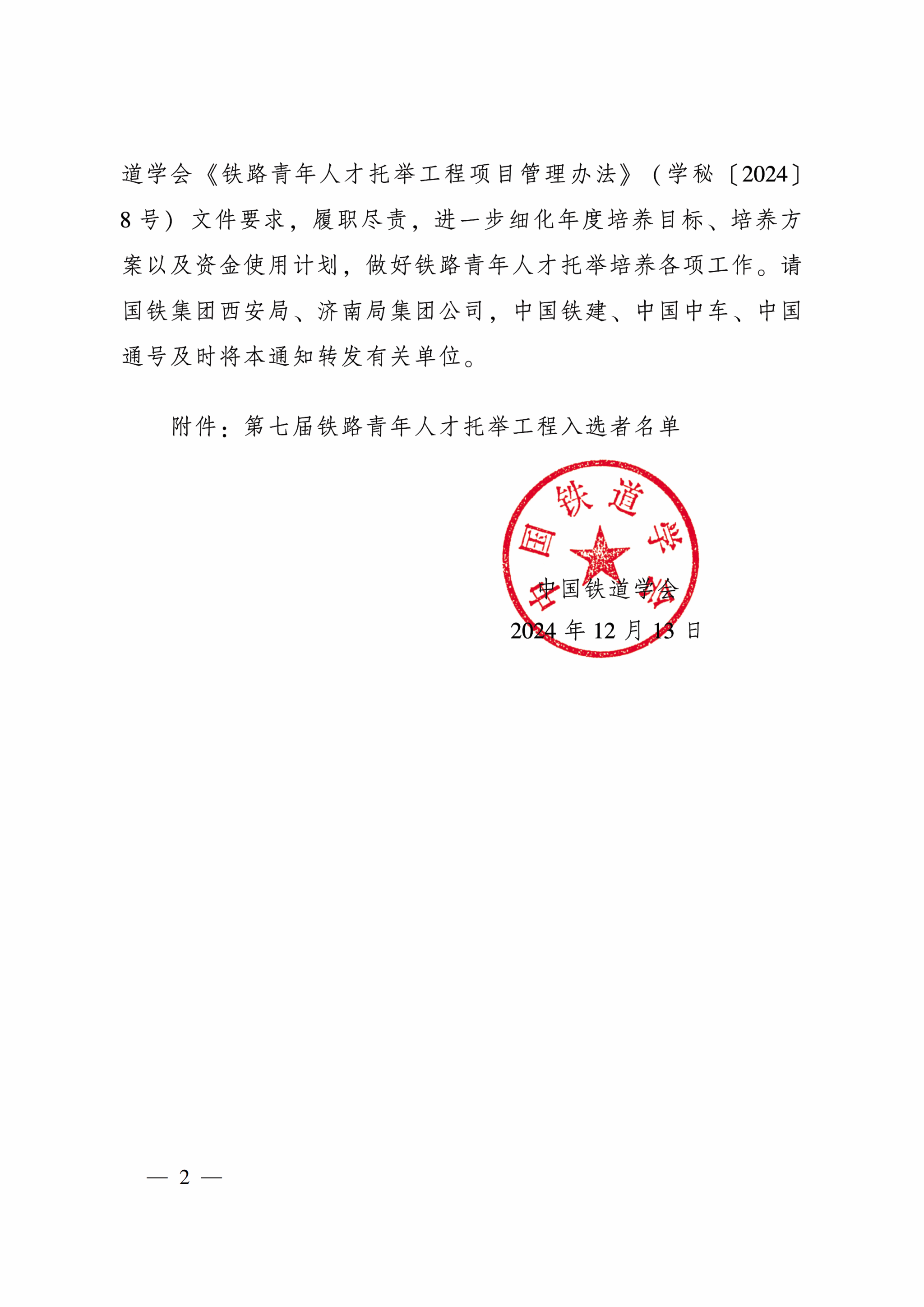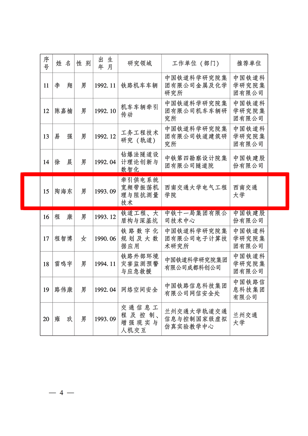 公司陶海东副研究员入选第七届铁路青年人才托举工程项目