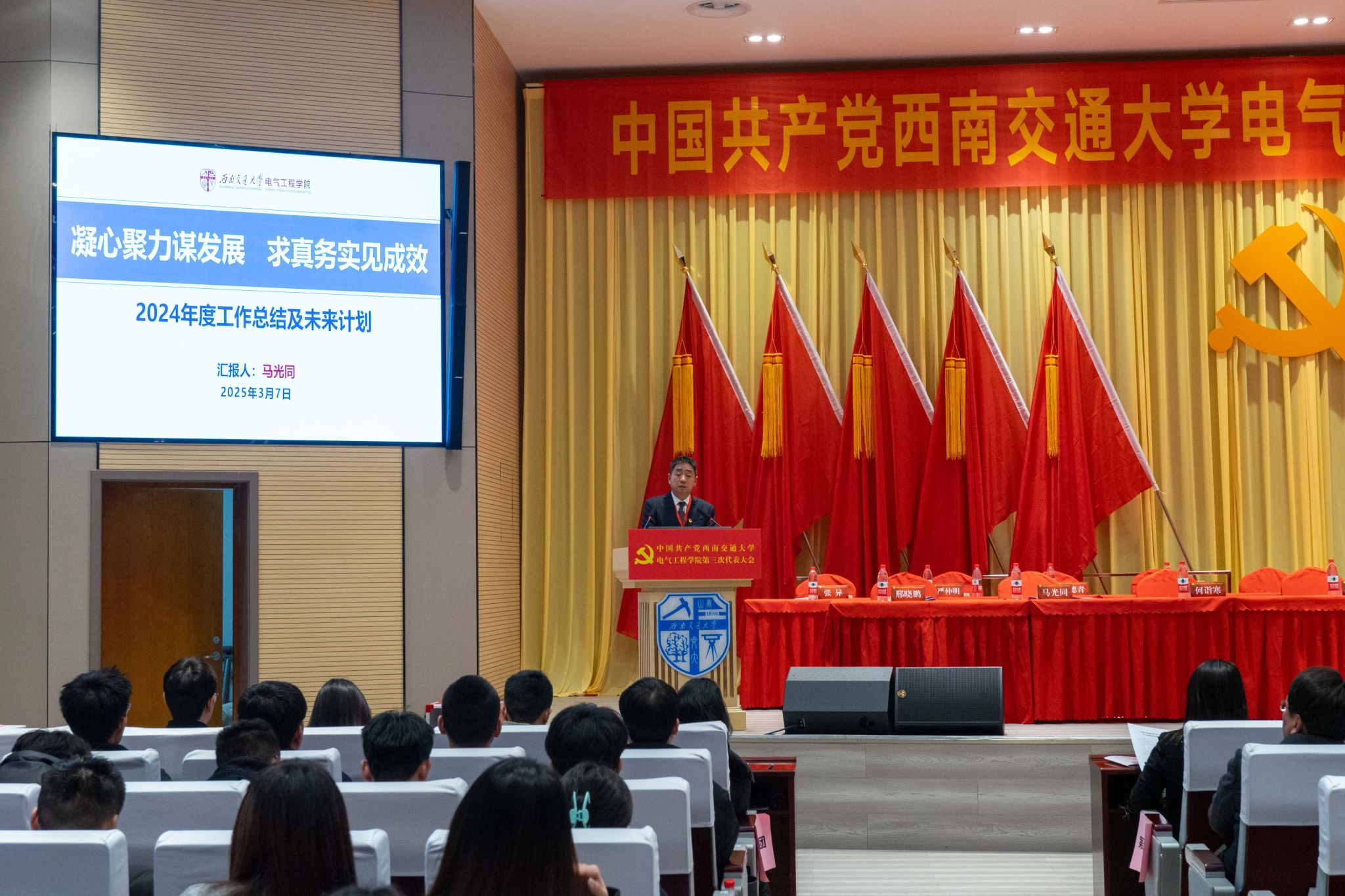 在监票计票期间,经理马光同就学院工作情况进行报告。报告指出,2024年学院坚持党建引领、学科牵引、教学核心、科研驱动、人才支撑,取得了丰硕成果。完成基本任务的同时,学院工作亮点突出,成绩斐然。党建工作迈上新台阶,科研奖励再创佳绩,青年人才队伍建设实现新突破。未来,学院要推动教育、科技、人才“三位一体”融合发展,布局一批具有战略前瞻性的学科方向,产出一批具有行业代表性的科研成果,培养一批具有广泛影响力的学术骨干,建成一批具有创新支撑力的科研平台,构建面向未来的电气新质人才自主培养体系,推动学院高质量发展。