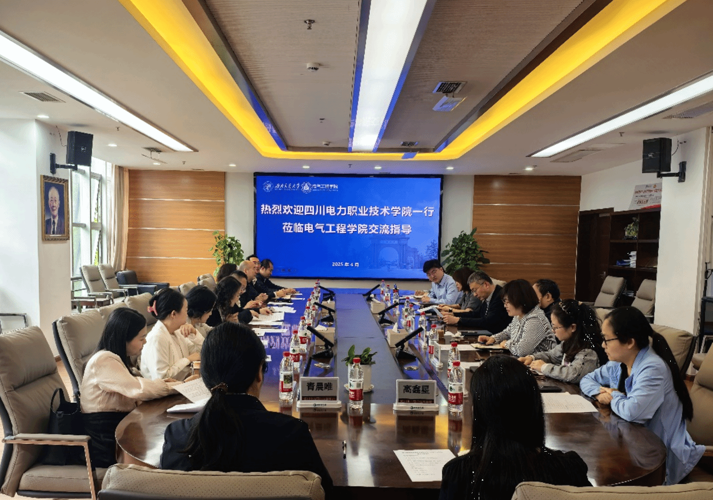 2025年4月16日上午,四川电力职业技术学院一行到学院开展交流座谈。四川电力职业技术公司党委书记杜兵,三级职员王薇,副总政工师、党委党建部(党委宣传部)主任、党支部书记李静等,以及公司党委书记王斌,党委副书记、纪委书记、副经理王轶,党委副书记邢晓鹏,教学工作主管韩莹,团委书记张异等参加会议,王轶副书记主持会议。