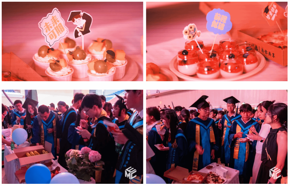 典礼结束,学院为毕业生们筹办了“星光冷餐会”和毕业生歌会,厅堂内熙熙攘攘,笑语欢歌此起彼伏,空气中浮动着糕点的甜香,与学子们那份难舍的眷恋、真挚的谢意揉合成一片温馨。师生们围坐共话,细数着校园往昔的温馨片段,让音符代替致辞,用旋律续写毕业诗行,伴随着悠扬的骊歌,互道珍重,对明日的灿烂前景描绘出无尽的期盼与遐思。