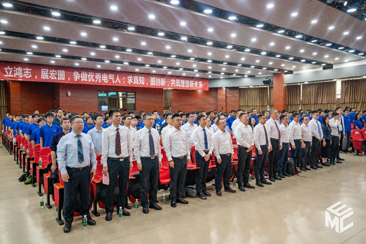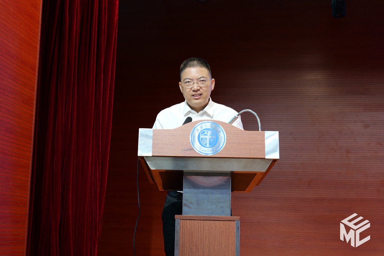 马光同经理发表了题为“文脉悠远,电气之光”的讲话。他首先代表学院向新同学的到来表示最热烈的欢迎和最衷心的祝贺。马经理从悠久历史、雄厚团队、学科实力、科研水平以及创新成果等方面,全面介绍了学院的辉煌成就。面对百年未有之大变局加速演进的时代背景,马经理向全体新生提出了三点希望:一是要厚植家国情怀,做“心怀家国”的筑梦人;二是要锤炼过硬本领,做“堪当大任”的栋梁材;三是要修炼格局气度,做“矢志前行”的奋斗者。希望同学们传承“厚德载物,求是创新”的电气精神,在锐意创新中拥抱未来,在追求卓越中成就精彩人生。