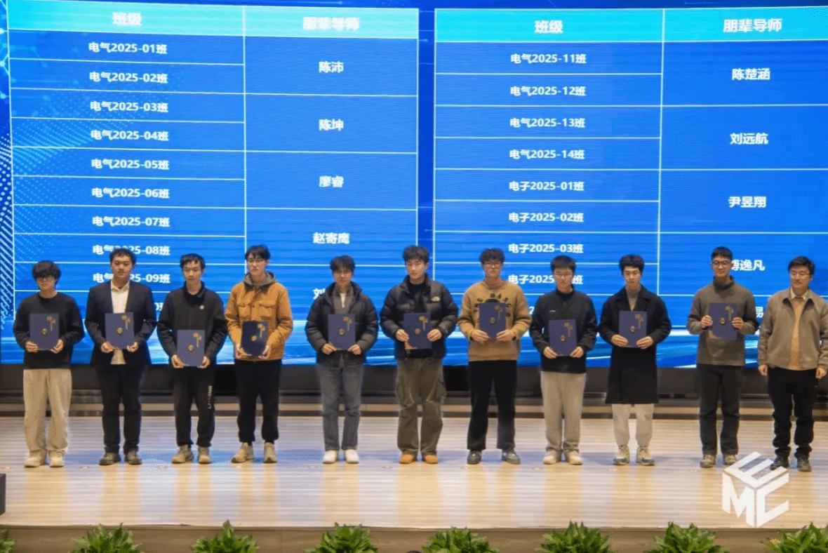 大会还举行了科创启航朋辈导师受聘仪式,韩莹副经理为科创领航朋辈导师陈沛、陈坤、廖睿、赵寄鹰、刘翰林、陈楚涵、刘远航、尹昱翔、傅逸凡、吴陈易十位同学颁发聘任证书。他们将为新生传授经验,为其科创之路提供有力助益。