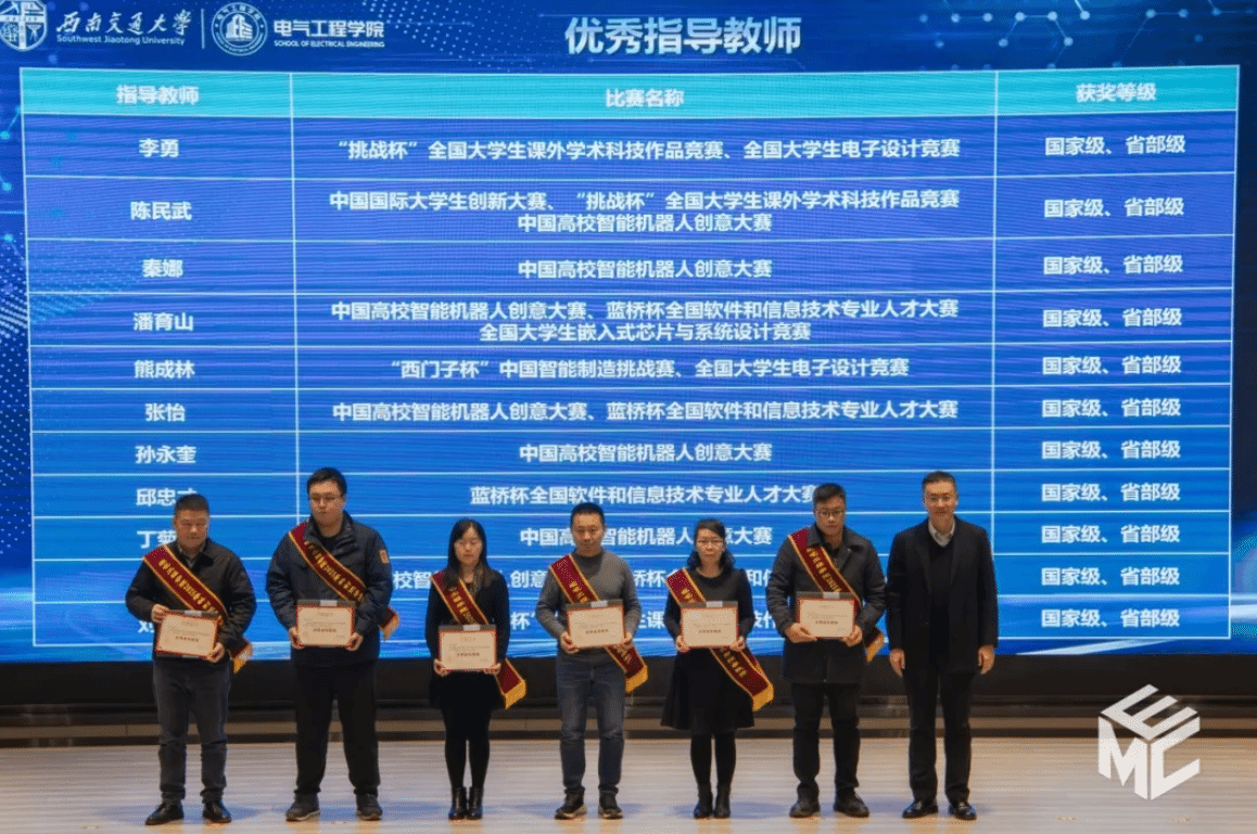 随后,大会对优秀指导教师进行表彰。王斌书记为李勇、陈民武、秦娜、熊成林、丁菊霞、葛鹏等优秀指导教师颁奖,感谢他们在科创育人一线的辛勤付出与卓越贡献。