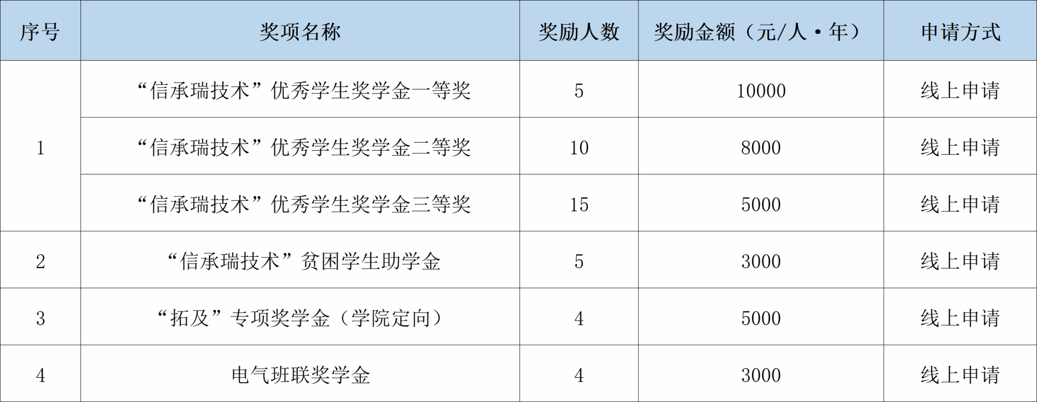 一、学校范围专项奖助学金